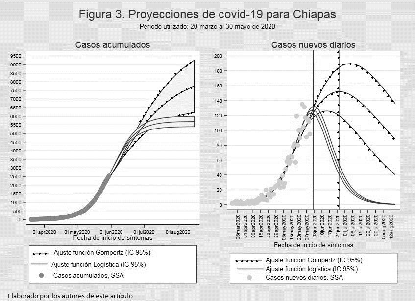 nuevos de covid-19 para Chiapas. Utilizamos dos métodos de modelación: la